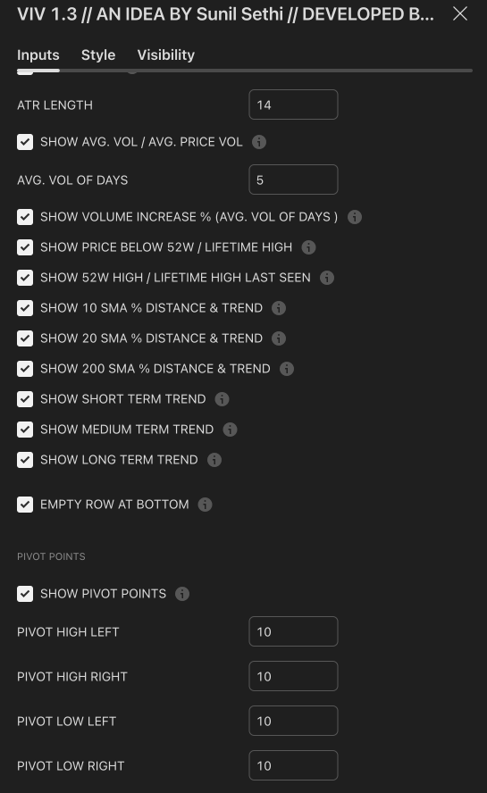 VIV allows visualizing pivot highs and lows using a dynamic window (left/right lookback).